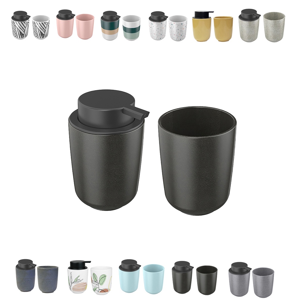 Kit Banheiro Porcelana Porta Escova Sabonete Líquido Lavabo 2 Peças Preto Branco