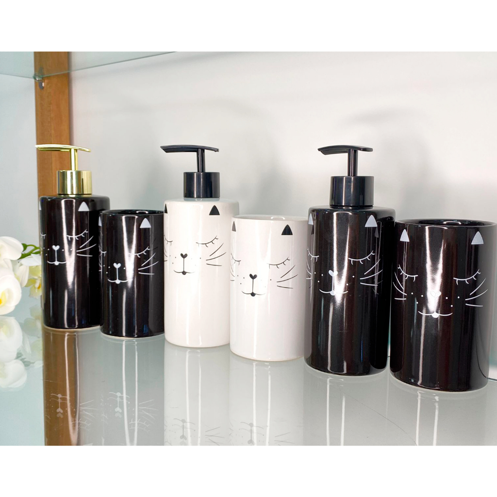 Kit Banheiro Lavabo Jogo Sabonete Líquido 2 Peças / Gatinho