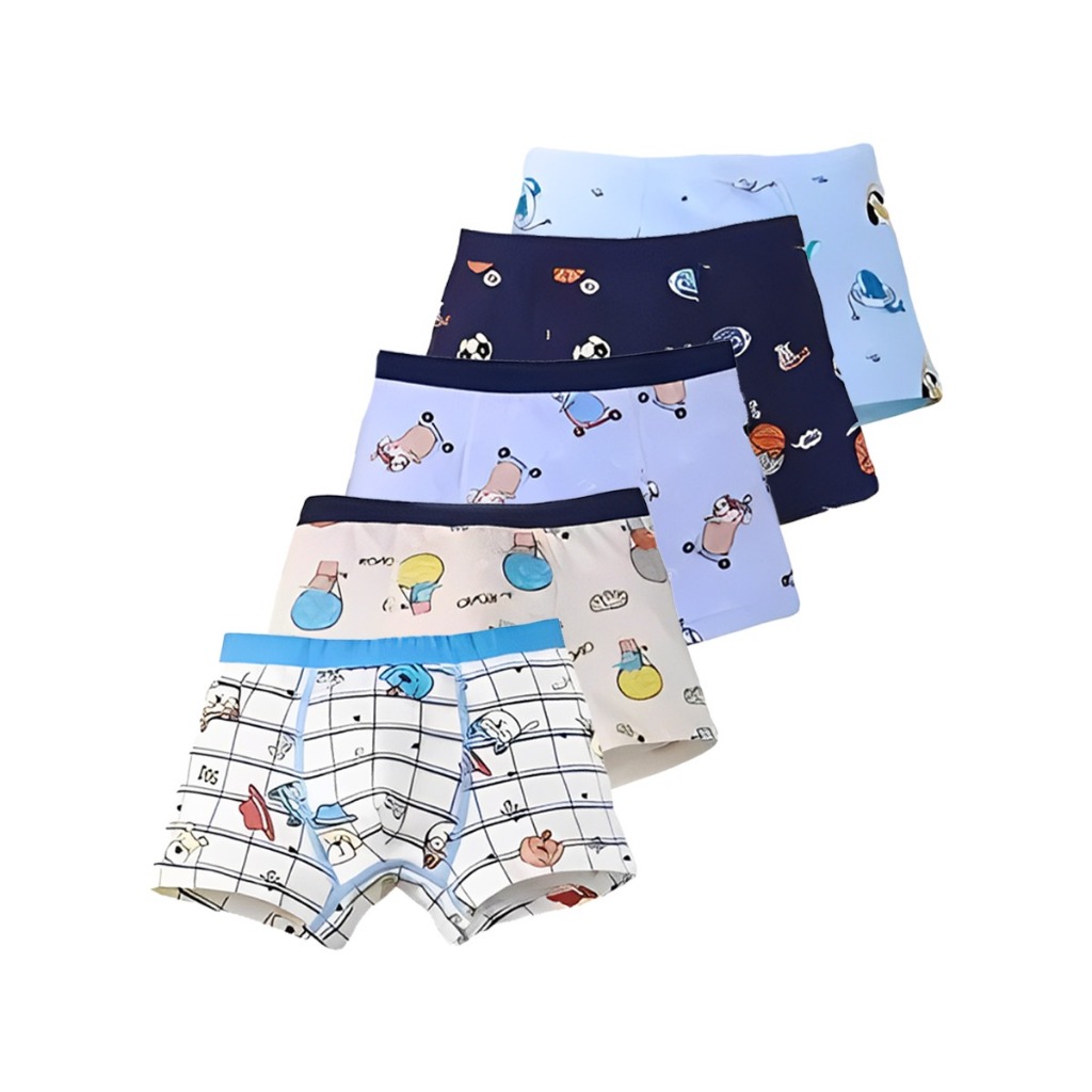 Kit 5 Cueca Infantil Box Shortinho Menino 100% Algodão Cotton Confortável Cuecas Criança Boxer Estampas Sortidas