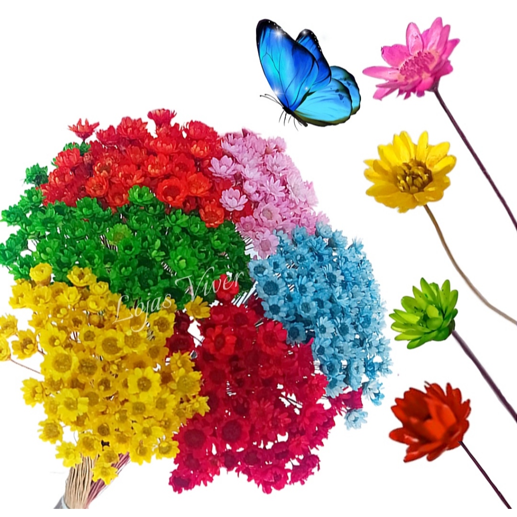 Sempre Viva Colorida Buquê 6 Cores Mix 300 Florzinhas