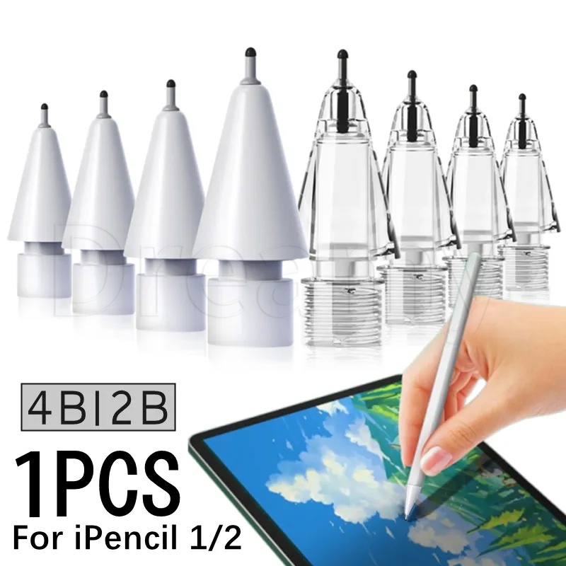 Ponta De Lápis De Silicone Resistente Ao Desgaste Para Maçã 1/2/Tubo De Agulha Damping Mute Stylus Pen Tips/Caneta De Substituição Sensível/4B 2B Cristal Transparente Bico De Reposição
