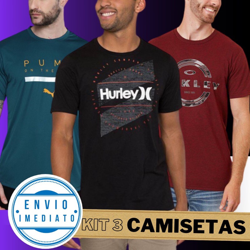 Kit 3 camisetas masculinas multimarcas camisa 100% algodão fio 30.1 penteado