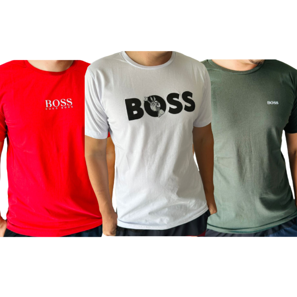 Kit 3 camisas Masculinas Boss em Algodão 30:1 Penteado Estampas Exclusivas Hugo Boss Revenda