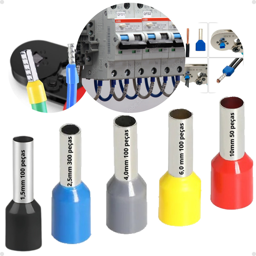Kit Terminal Pré isolado Tubolar Ilhós 1,5| 2,5 | 4 | 6 | 10mm Cores Padrão