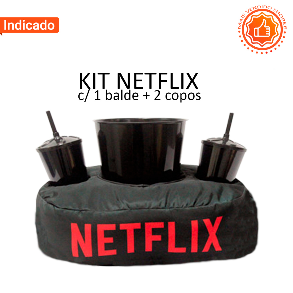 Kit Almofada C/Porta Pipoca - Balde +2 Copos Netflix C/Bolso