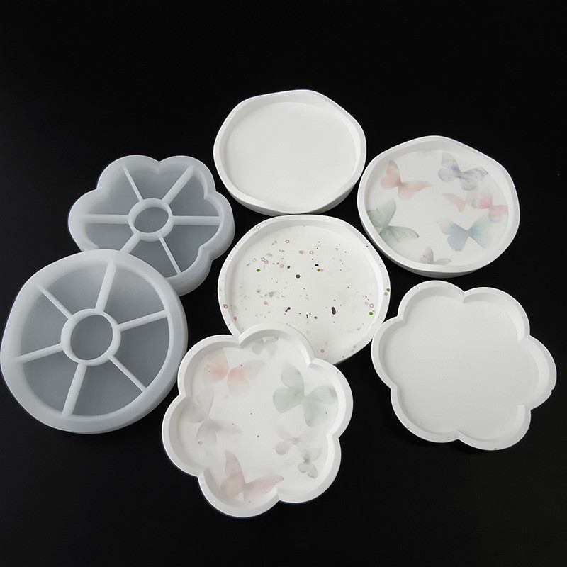 Molde De Silicone De Cristal De Gotejamento Cimento De Gesso Placa Redonda Ameixa Bandeja De Armazenamento De Candelabros