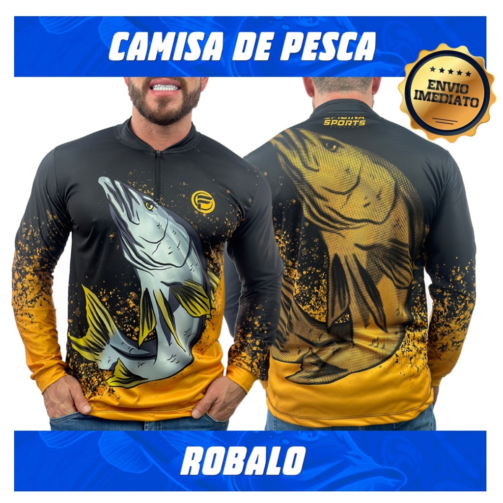 Camisa de Camiseta Pesca Robalo com Proteção Solar UV50+ Masculino ou Blusa de pescaria em Dryfit + ENVIO IMEDIATO