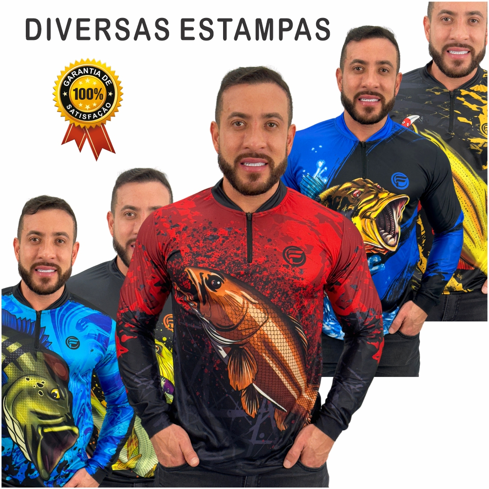 Kit 3 Camisa de Pesca Proteção Solar Uv50 Blusa Tecido Dry fit Camiseta Peixe DE Pescaria Tucunare