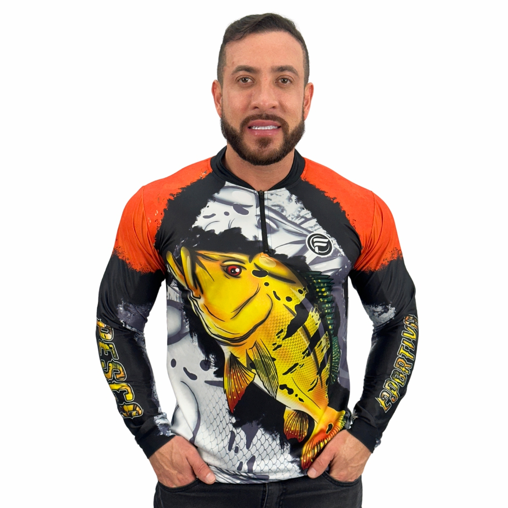Camisa Camiseta Blusa Pesca com Proteção Uv50 Peixe Pescaria Tucunaré Masculina