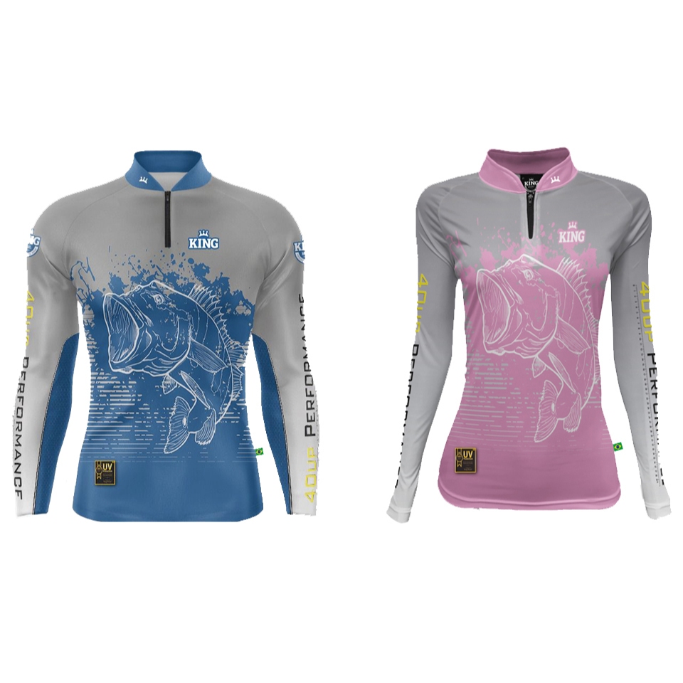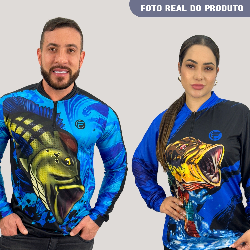 Kit Camisa Camiseta Blusa de Pesca Casal Tucunaré 40UP com Proteção Solar King Brasil