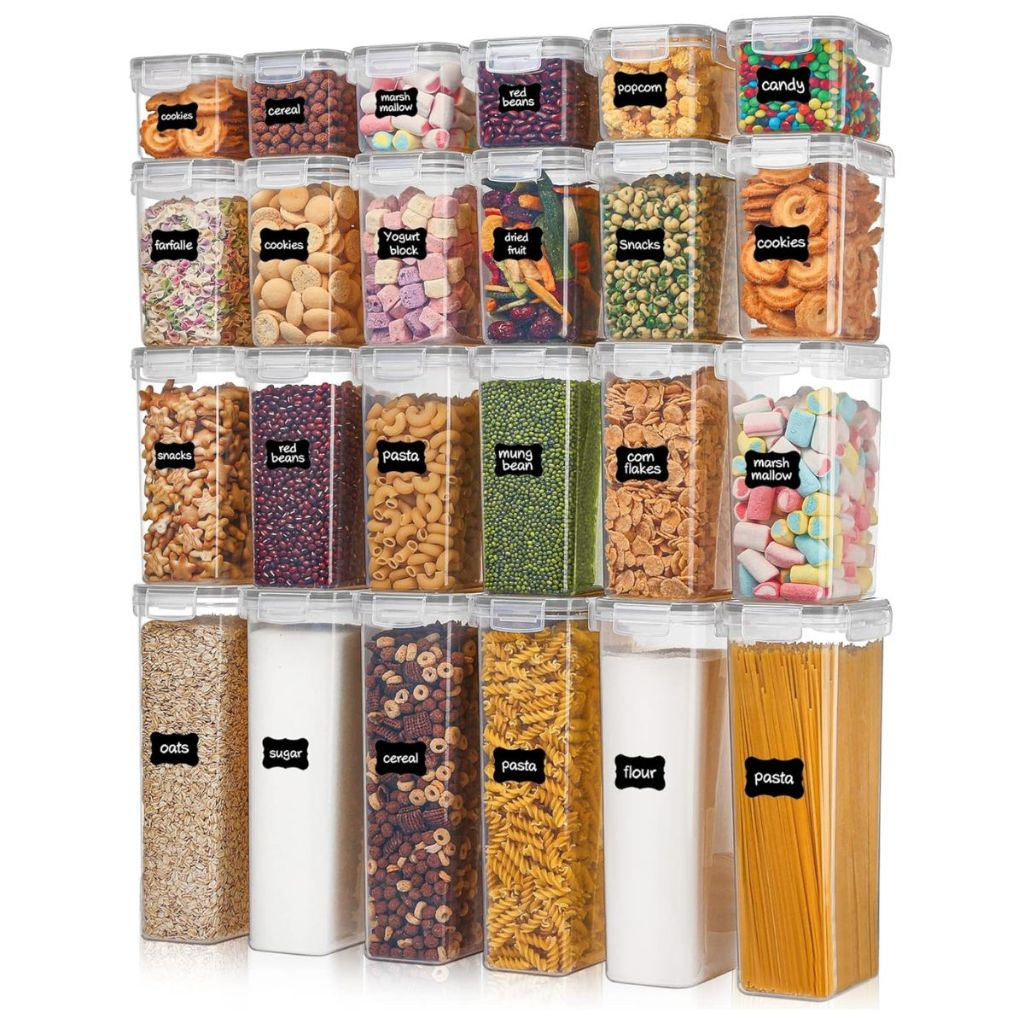 House Organizer Potes Herméticos para Alimentos com Tampa – Kit com 15 ou 24 Porta Mantimentos