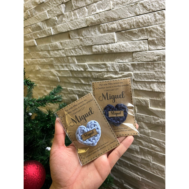 kit Coração em fio de malha chaveiro lembrancinha com nome personalizado