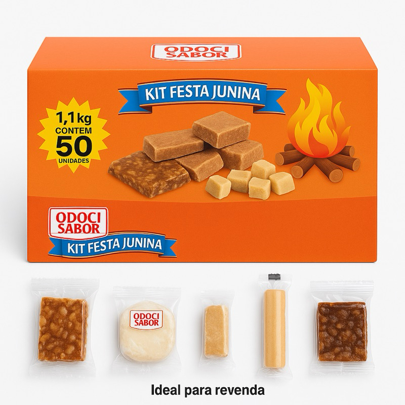 Kit Doces De Festa Junina - Paçoca, Doce de Leite, Cocada, Pé de Moleque - 1,1kg (50 Unidades)
