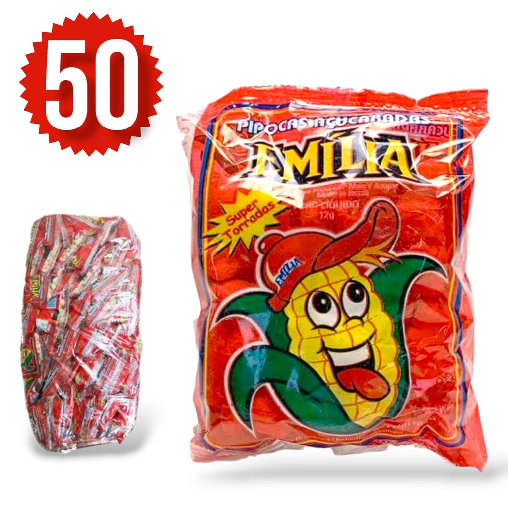 Pipoca doce Emilia 50 unidades de 12g - Doces Para Sacola surpresa e Festa Junina - Envio Imediato