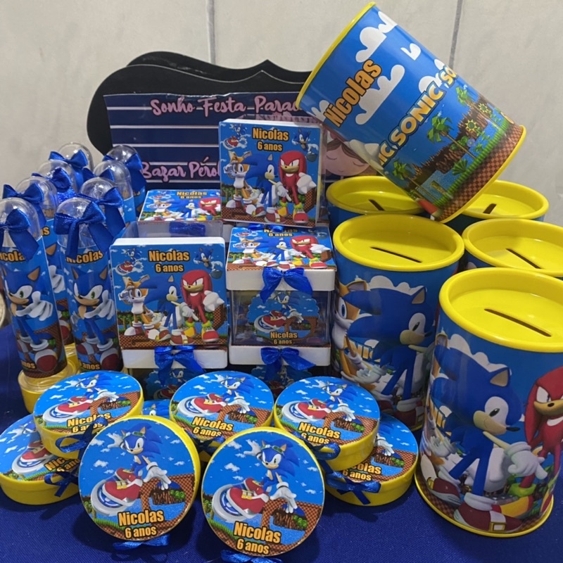 kit lembrancinhas Sonic 10 cofres, 10 cxs acrílicas 5x5), 10 Tubetes e 10 latinhas Cor de acordo com a disponibilidade mais sempre combinado com o tema