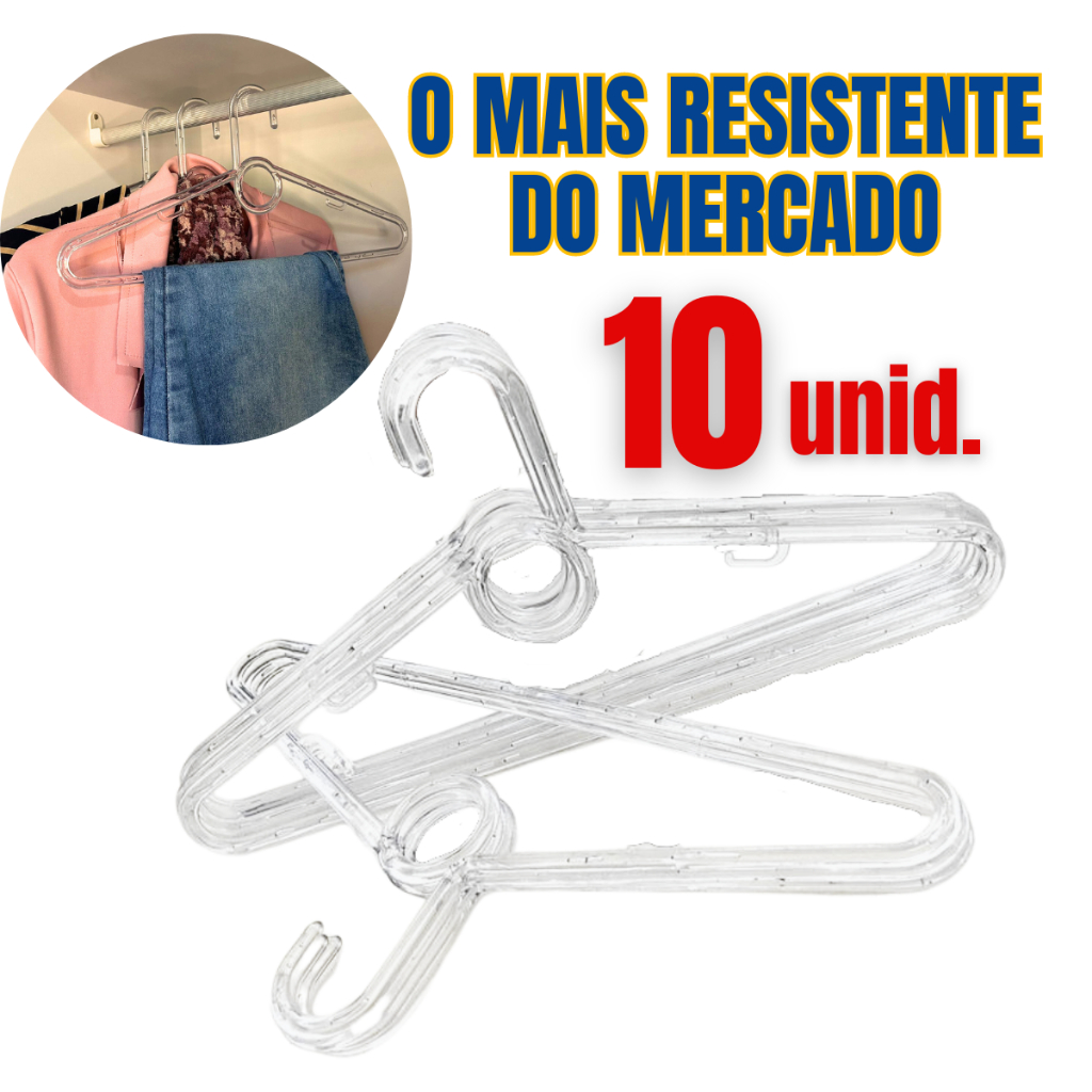 Kit 10 Cabides De Acrílico Transparente Adulto Reforçado