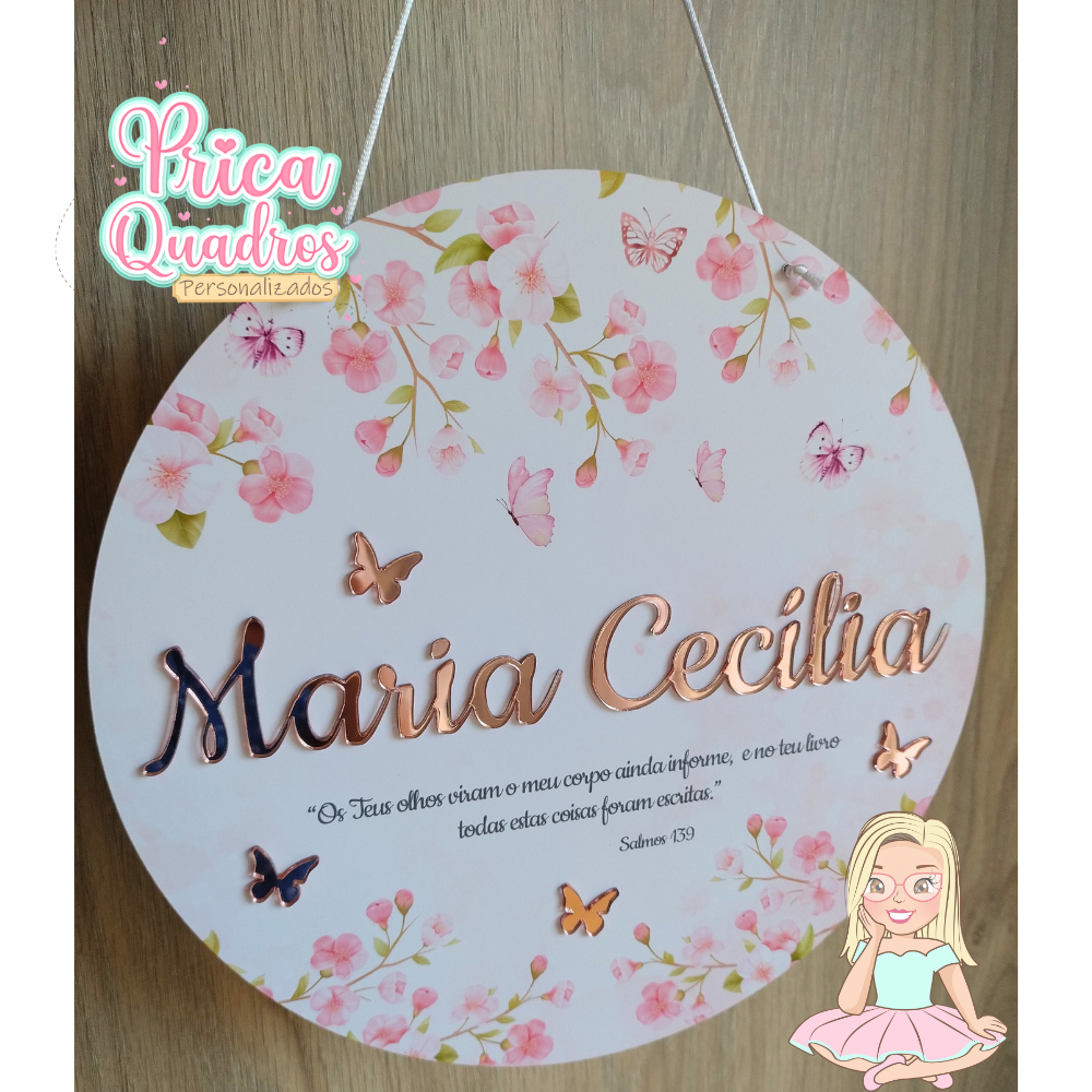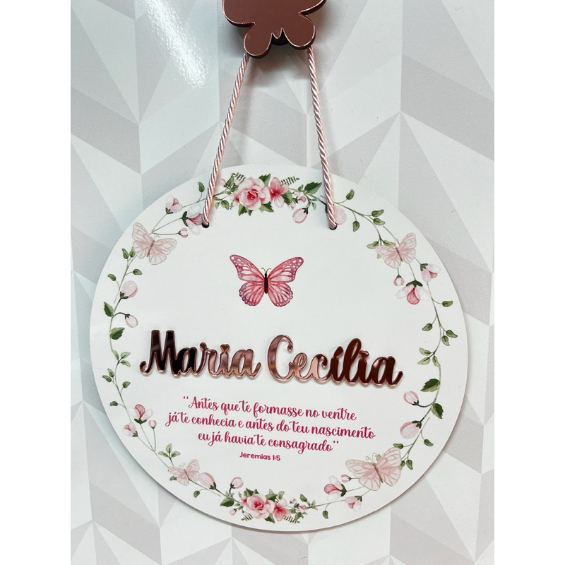 PORTA MATERNIDADE OU ENFEITE DE PORTA MENINA FLORES BORBOLETAS VERSÍCULO BÍBLICO FRASE ORAÇÃO SANTO ANJO 3D ALTO RELEVO