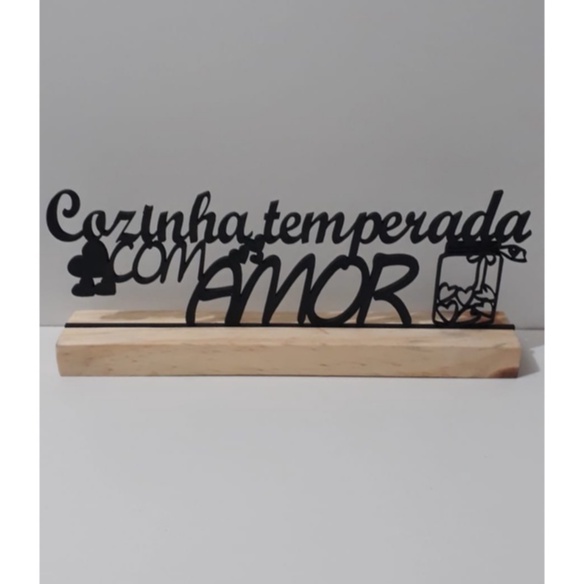 Palavras Decorativas de Mesa com base Madeira - Plaquinha Placa Decorativa Enfeite de Mesa Decoração Casa Sala Escritório Cozinha - Cozinha Temperada com Amor Mdf