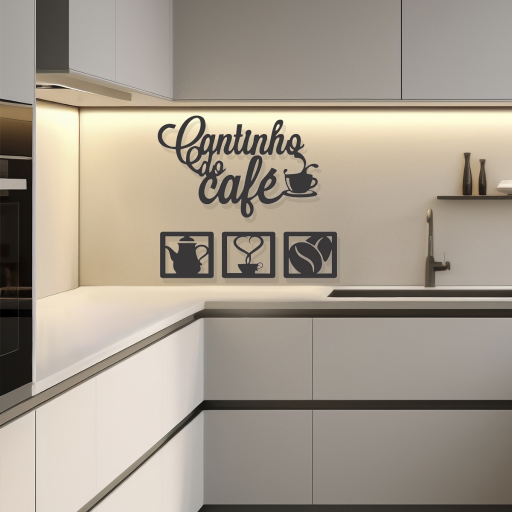 Kit Cantinho do Café 4 Peças Quadro Placa Decorativa Vazada Decoração Cozinha MDF