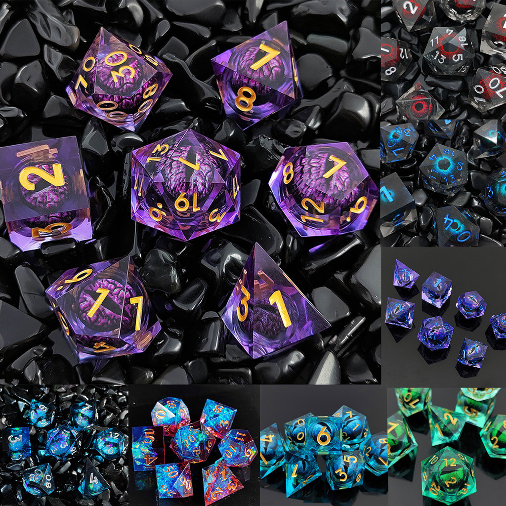 7PCS Dnd Green Liquid Flow Eye Dice Set & Dados Do Núcleo De Fluxo Líquido D E Sharp Edge Para RPG Dungeon Dragon Pathfinder Jogo De Mesa D20 D12 D10 D6
