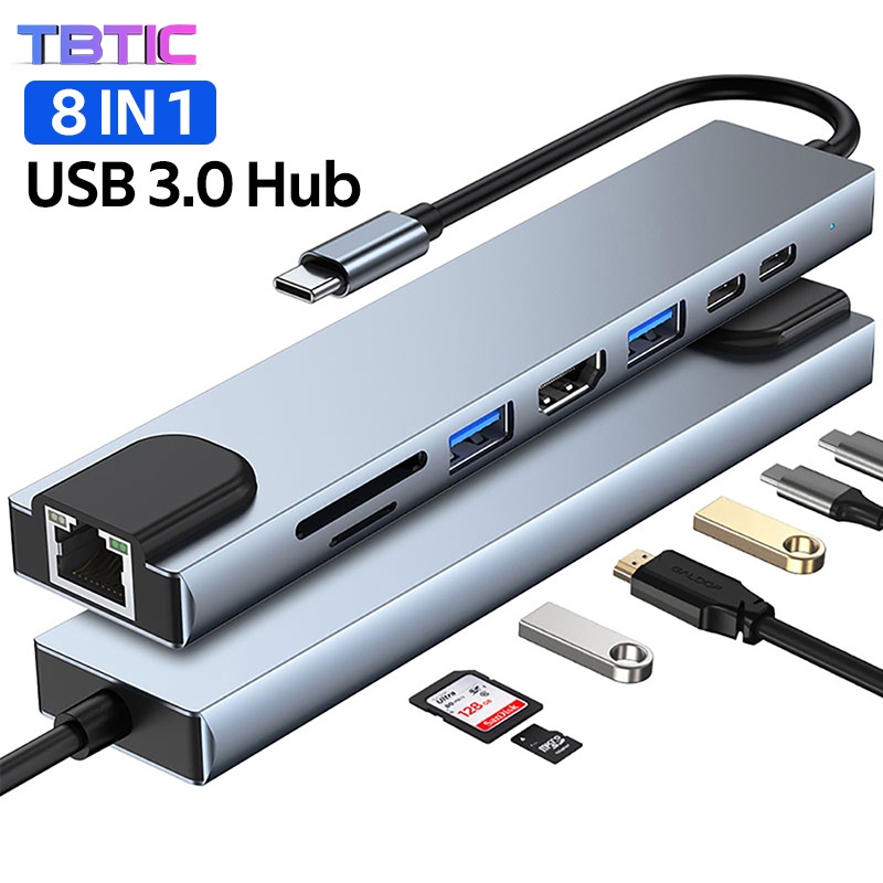 Hub Adaptador Tipo-c 8 Em 1 Hdmi 4k Usb 3.0 Para Laptop Adaptador PC Computador PD Carga 8 Portas Dock Station RJ45 HDMI TF/SD Card Notebook-Tipo Compatível MacBook/iPad Pro 2018/Dell XPS