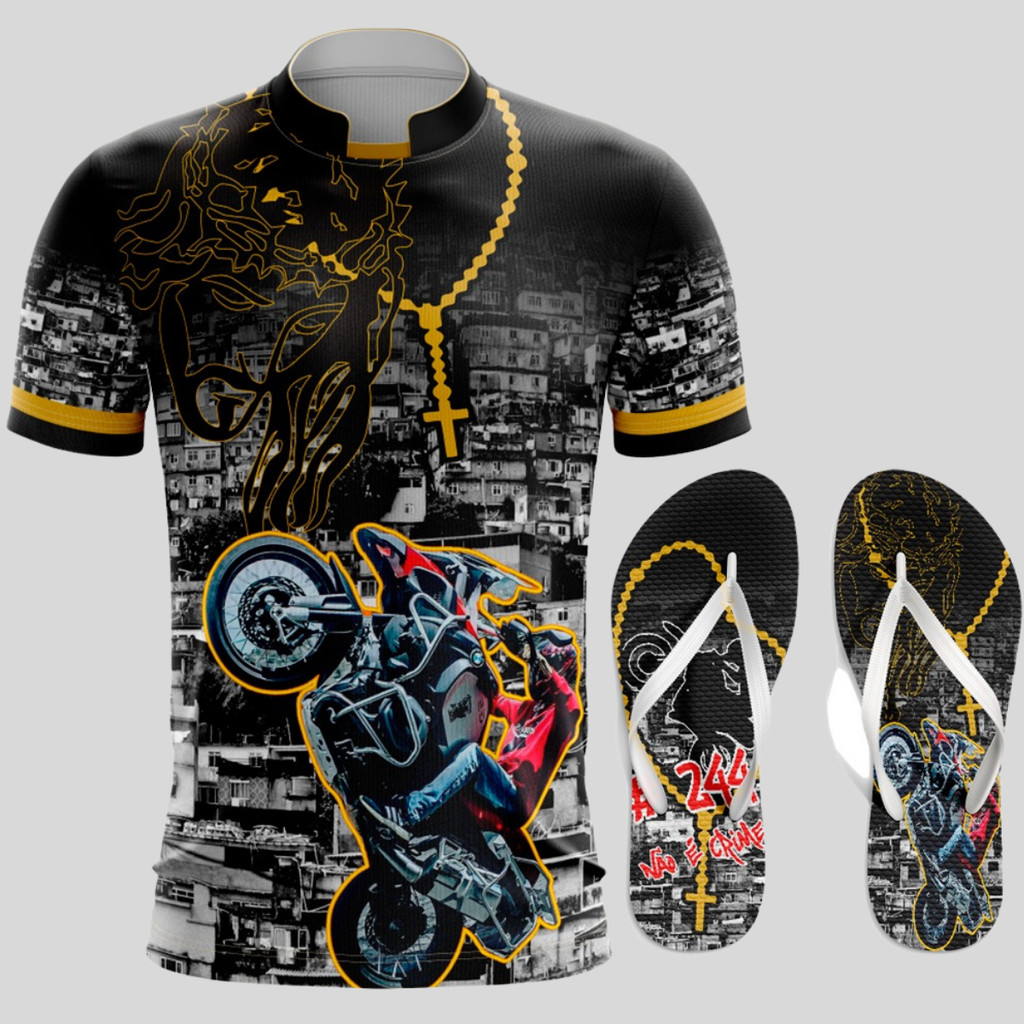Kit Combo Camisa Moto robozão Grau Não É Crime é arte Dry fit + Chinelo 244 Favela personalizado