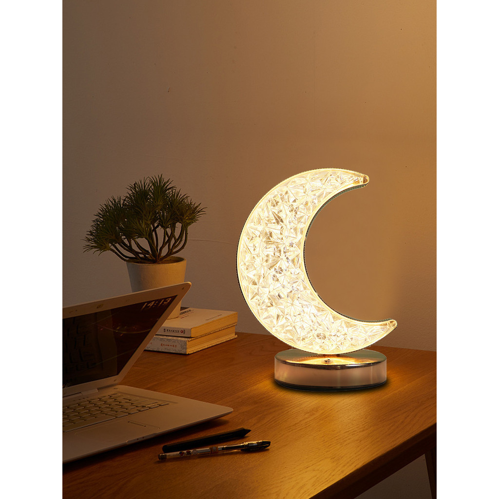 Lâmpada De Mesa De Toque Lunar De 1 Peça Em Forma De Lua , Lâmpadas Cabeceira De 3 Cores , Atmosfera Fofa Cama Para Sala De
