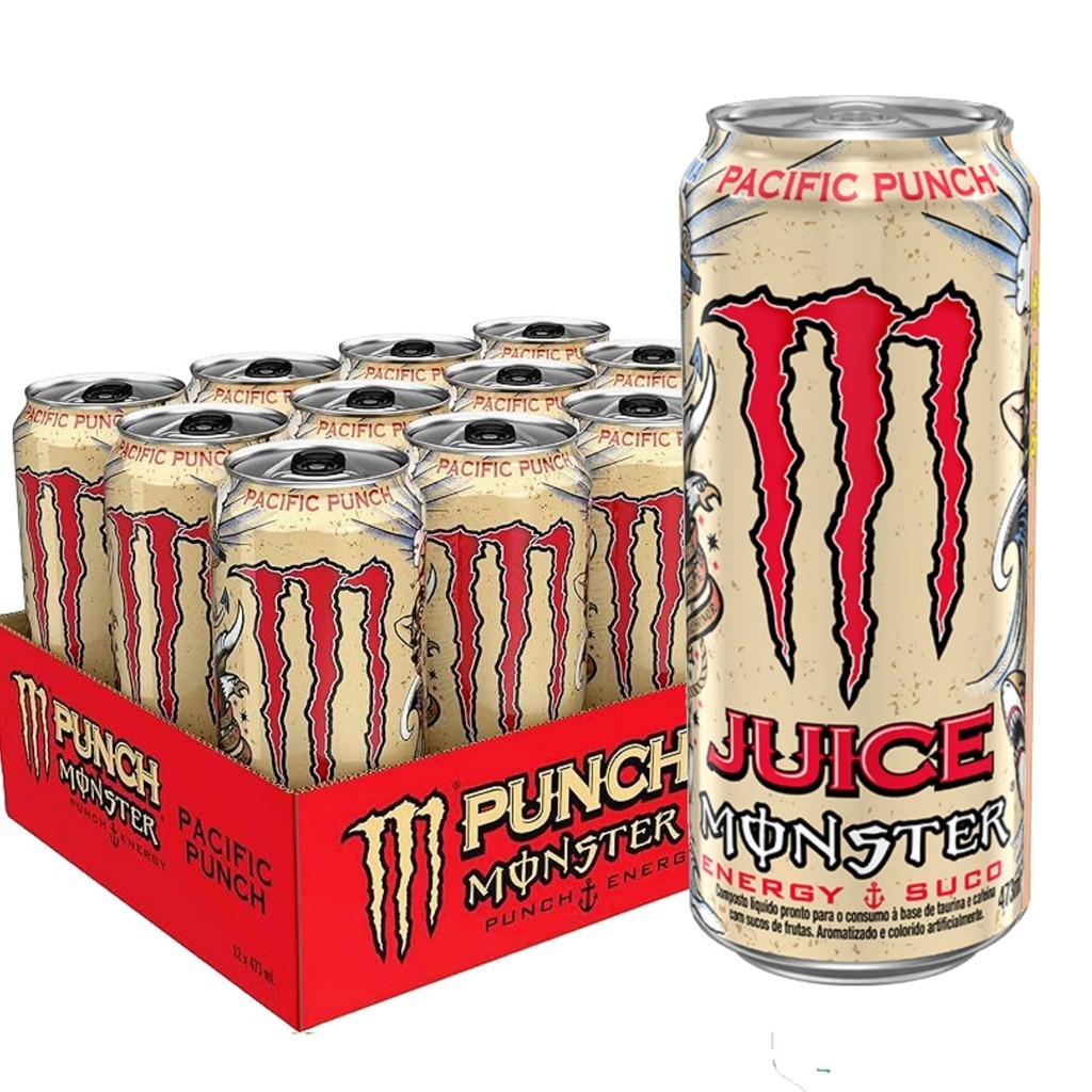 Kit c/12un Energético Monster Energy Pacific Punch 473ml Cereja Frutas Vermelhas Lata Vermelha Branco Fardo Caixa Pack
