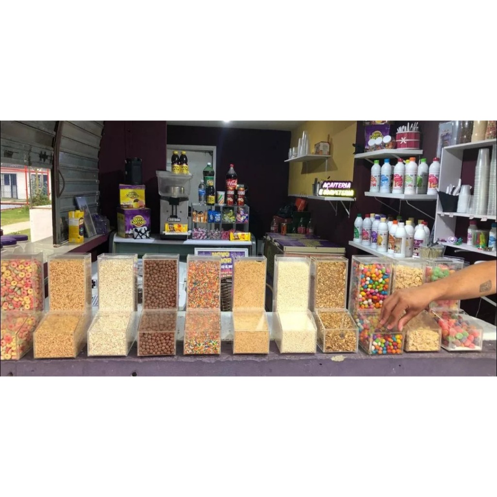Pote de acrílico para açaíteria sorveteria complementos de açaí 10x14x18 com 6 potes