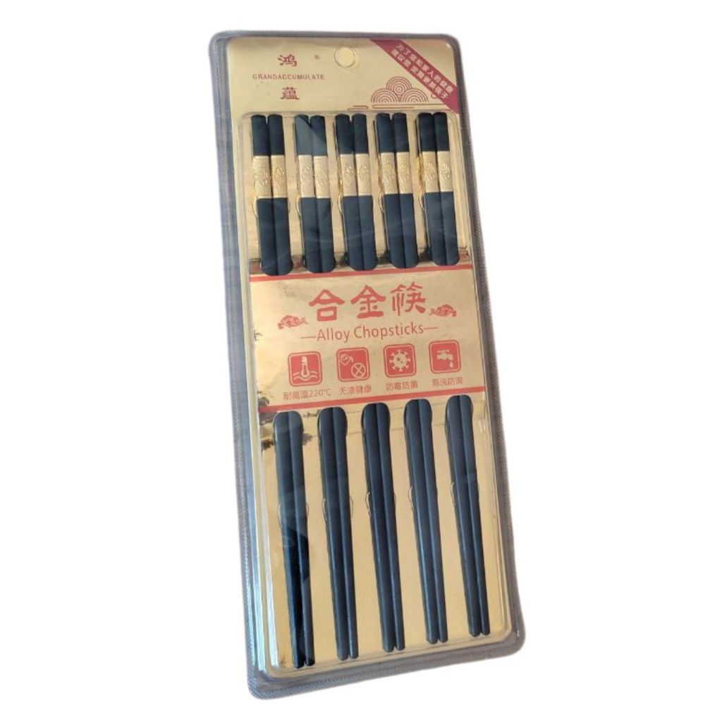 kit 10 Hashi 5 Pares pauzinho comida japonesa chinesa Preto detalhes Dourado Estilo Chinês