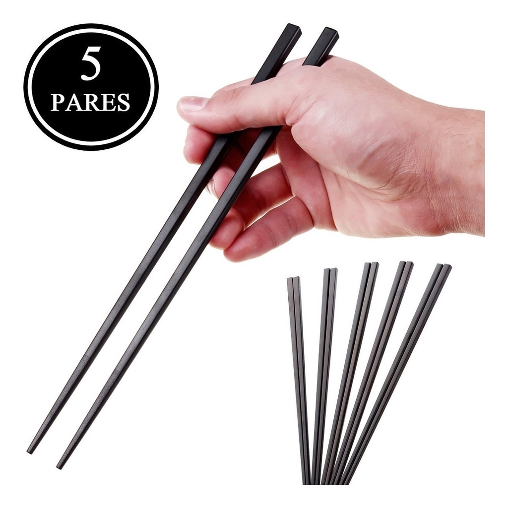 Kit 5 Pares Hashi 24cm Reutilizável Preto Pauzinhos Japoneses Comida Japonesa Coreana Chinesa