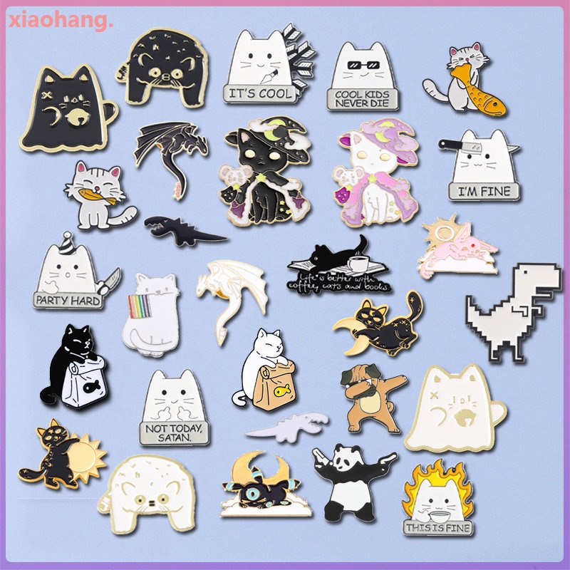 29 Estilos Fofo Desenho Animado Preto Branco Gato Gatinho Esmalte Lapela Alfinetes De Dinossauro Animal Crachá Pin Joias Acessórios Presente