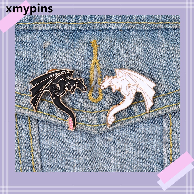 Alfinetes Casal Dragão Preto E Branco Barulho Bonito Filme De Desenho Animado anime Pterossauro Amor Broche De Esmalte Acessório De Festa Criativo