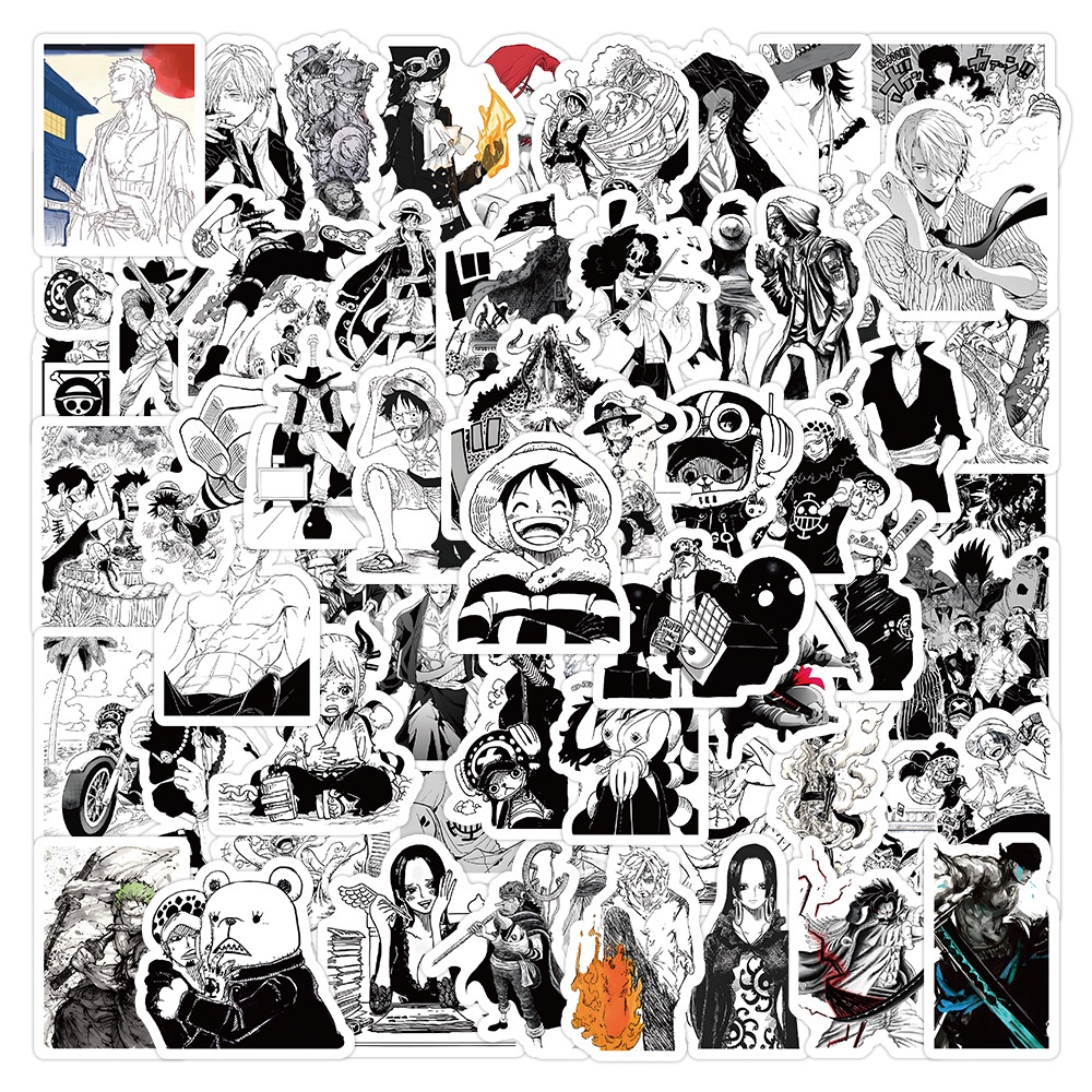 100PCS Desenho Animado Anime Preto E Branco Um Pedido Macaco D . Autocolantes Luffy Graffiti Para Capacete De Bicicleta Decalques De Lápis LanLanStickersWorld