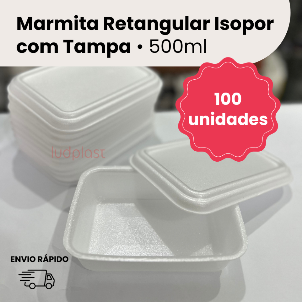100 un Pote Retangular de Isopor Marmita com Tampa 500ml