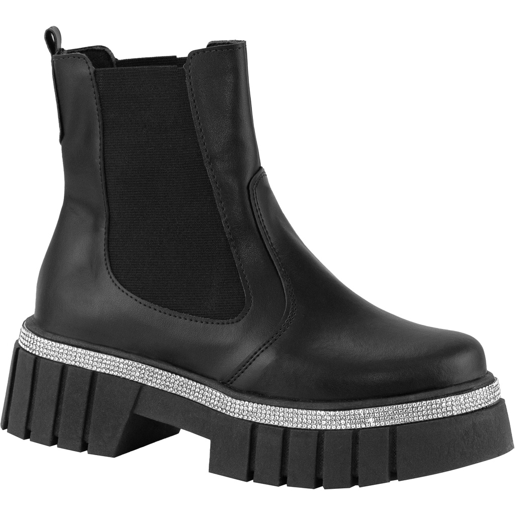 Bota Chelsea Feminina Coturno Plataforma Tratorado Strass Brilho Cristal Cano Curto Confortável Botinha Calce Fácil Flatform Macio Fashion