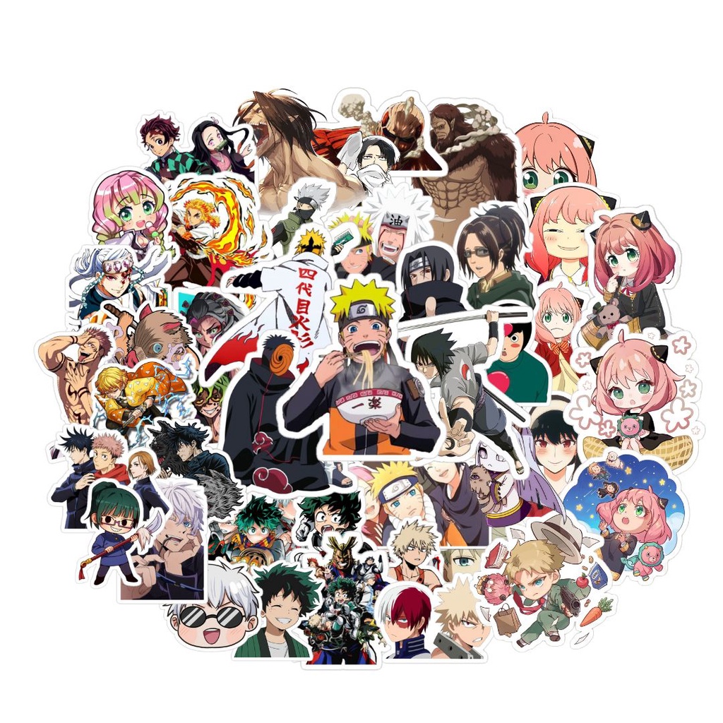 Pack 50 Adesivos de Anime Sticker Figurinha Naruto Demon Slayer Jujutsu Kaisen Attack on Titan Boku no Hero Spy x Family