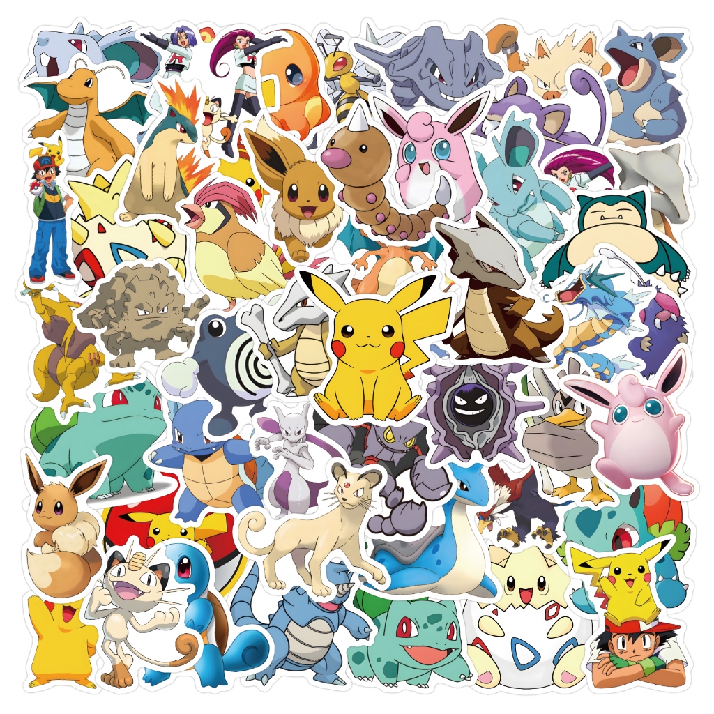53pcs Adesivo Pokemon Sticker Anime Pack Vinil Autocolante À Prova D'água Adesivos De D'água Para Aquaflask Water Bottle Laptop Scrapbook Journal Kindle Guitar