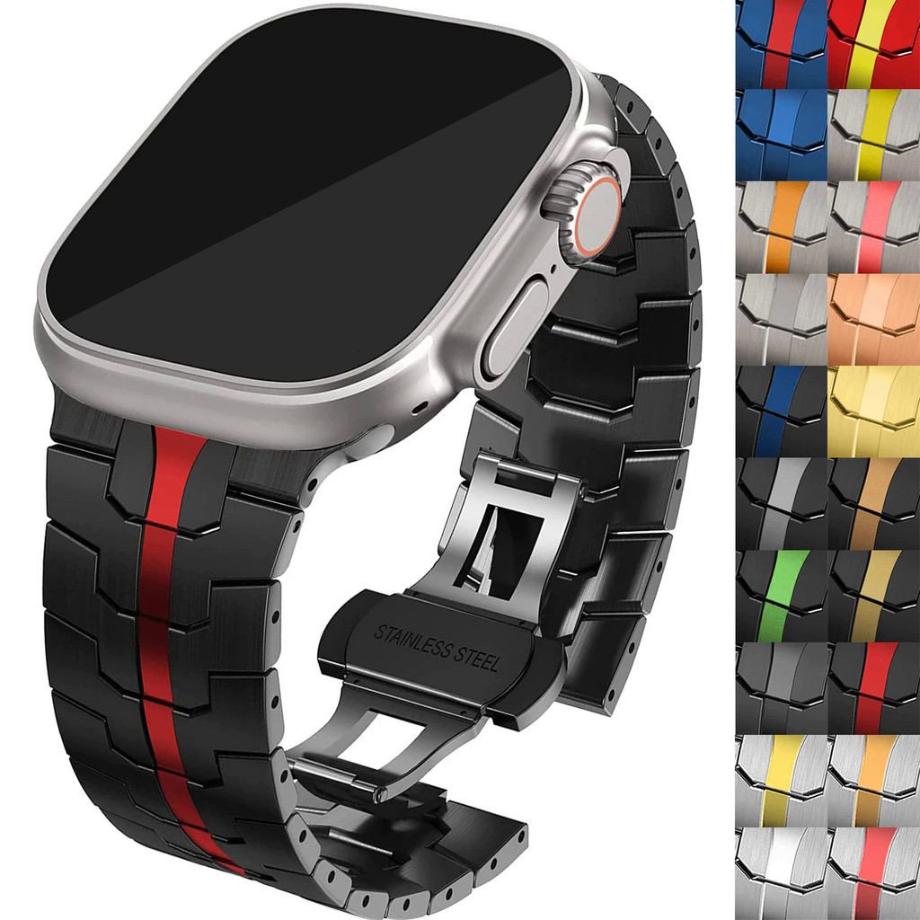 Pulseira de Aço Inoxidável para iWatch Ultra Banda 49mm 45mm 44mm Man Metal Link Pulseira Iwatch 9 8 7 41mm SE 6 40mm 3 38mm