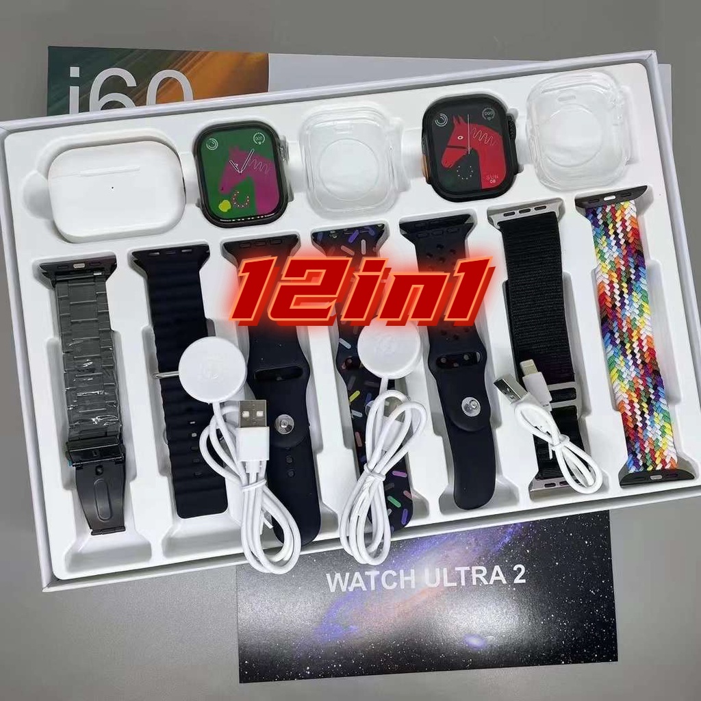 【 12in1 】 2024 Novo Relógio De Casal i60 Set Inteligente De 2,03 Polegadas Dual Watch9 Ultra2 Com Fones De Ouvido De 5a Geração/7 Pulseira/2 Caixa Protetora Sem Fio 12 Em 1 smartwatch pk 7