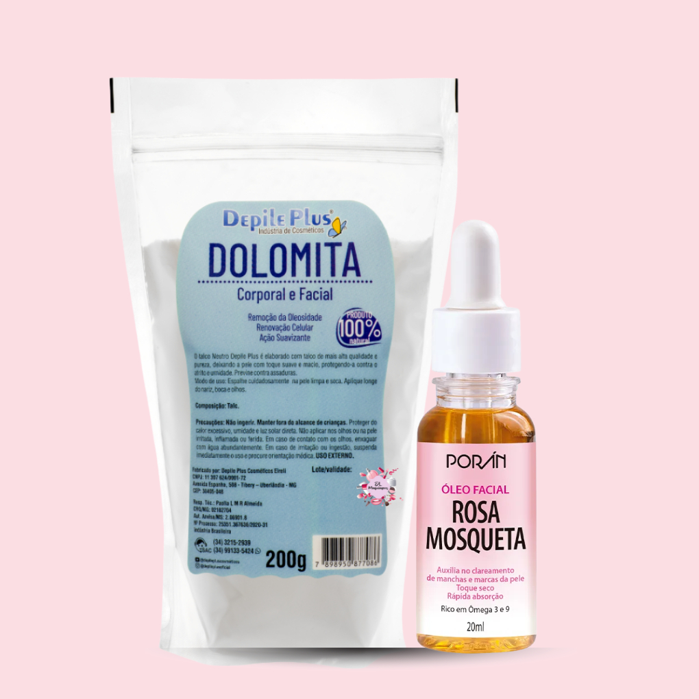Dolomita em Pó 200g + Óleo de Rosa Mosqueta Cuidado Facial - Antimanchas
