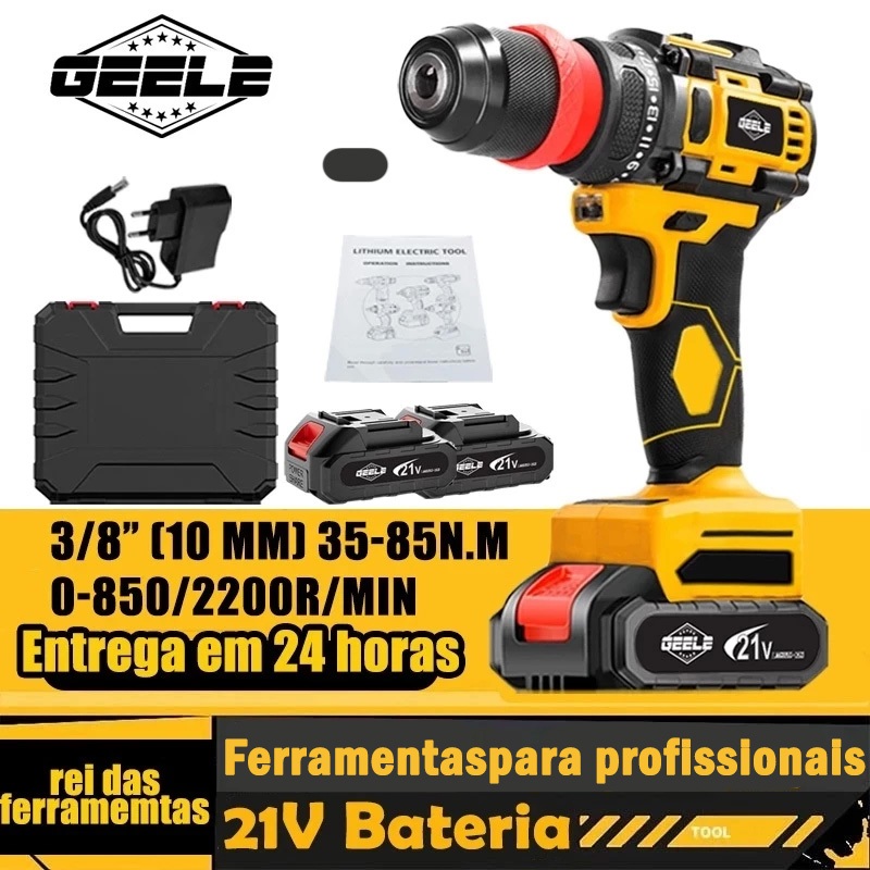Furadeira Parafusadeira de impacto 3/8" a bateria 18V 2 Baterias e acessórios GEELE