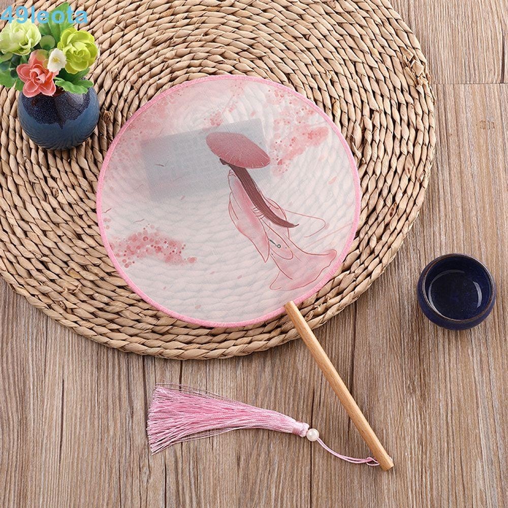 LEOTA Grupo Feito A Mão Ventilador De Antigo Impresso Festa De Casamento Em Casa Decoração Acessórios De Dança Bordados Impressão Com Tassel Round