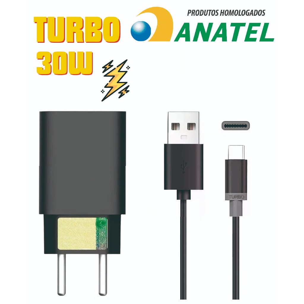 Carregador Turbo USB Tipo C Compatível Com Motorola Cabo Mais Fonte 30W Moto G E X Z