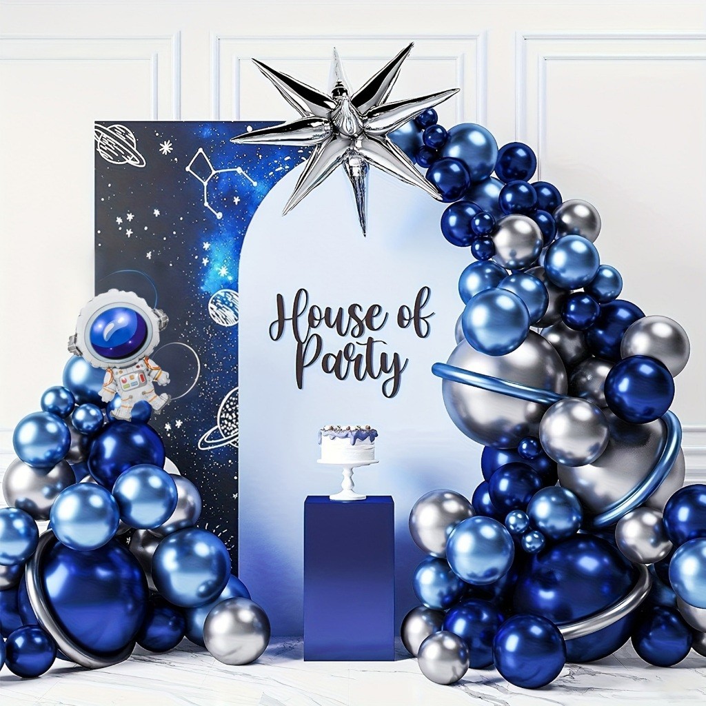 Conjunto de 112 Balões Astronauta para Festa de Aniversário, Decoração Galáxia com Colunas, Estrelas e Tema Espacial