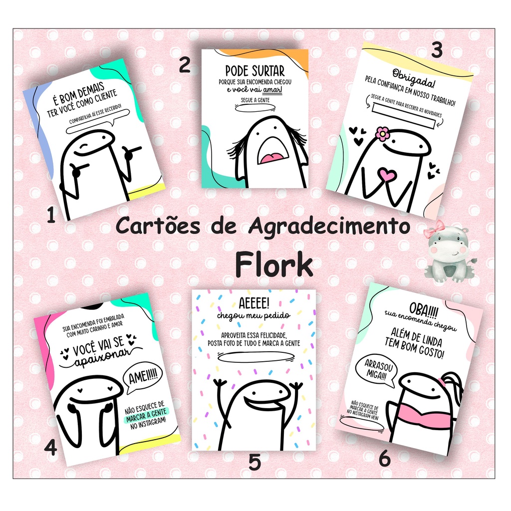50 unidades CARTÕES MEME FLORCK / FLORK - Cartão de agradecimento, agradecimento ao cliente flork