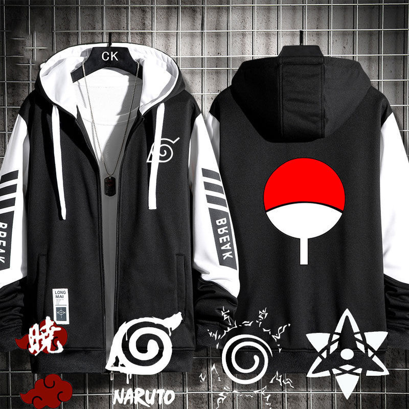 Casaco De Moletom Masculino Anime Naruto Jaqueta Preta College