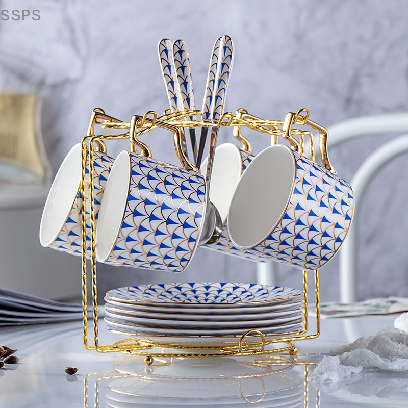 [SSPS] Suporte Para Xícara De Café E Pires 6 Xícaras 6 Placas Canecas Modernas Duráveis Bancada FAH