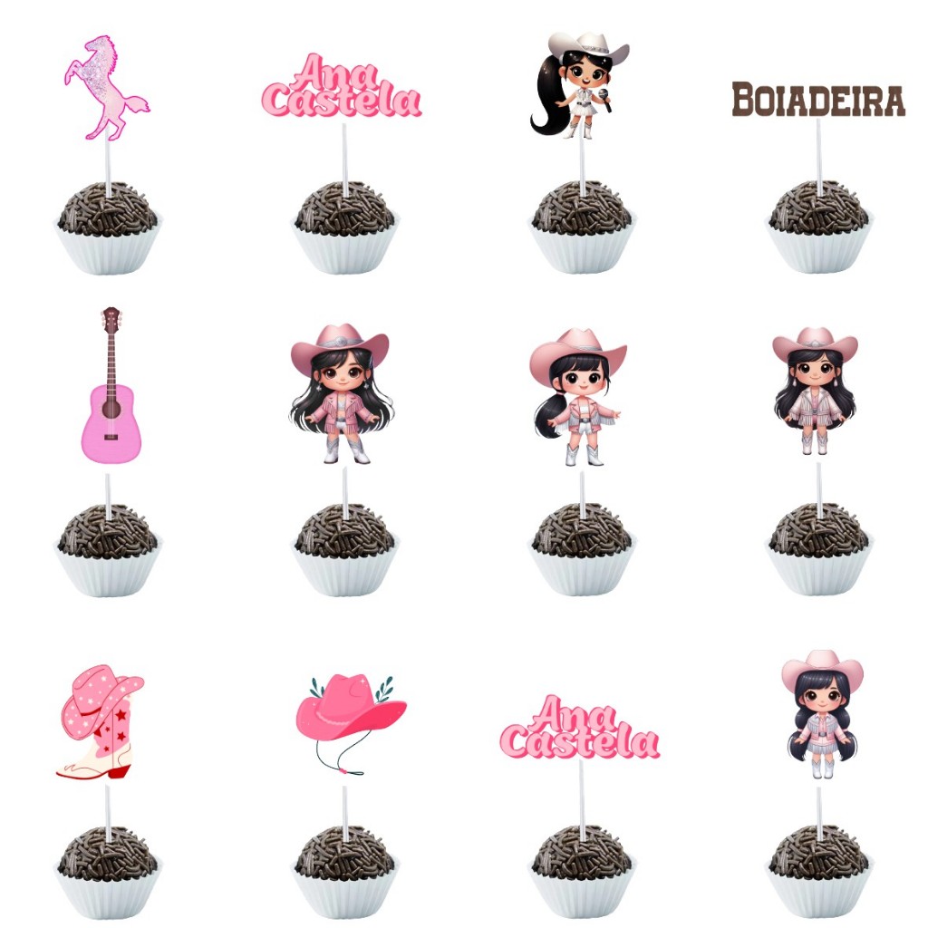Tags Ana Castela Toppers de Docinhos com Palito Decoração Festa Boiadeira Country Cupcake Brigadeiro