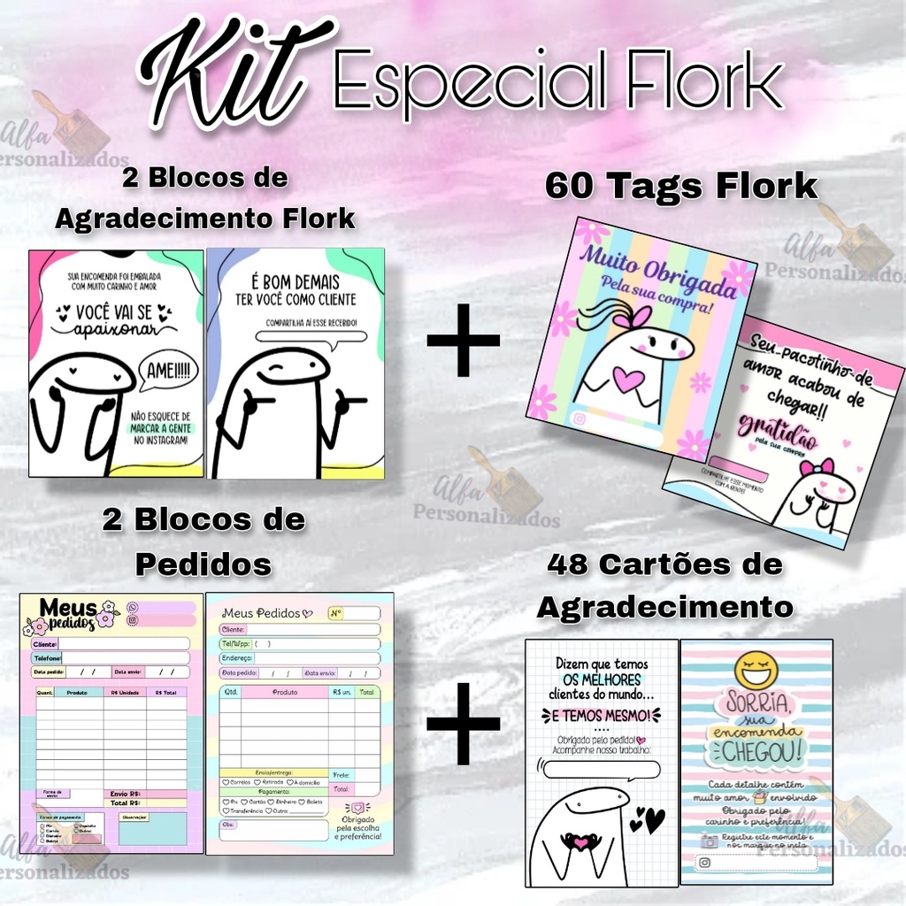 Kit Bloco de Agradecimento Flork Personalizado/ Bloco de Pedidos/ Tags Mimo Cartão de Agradecimento ao Cliente